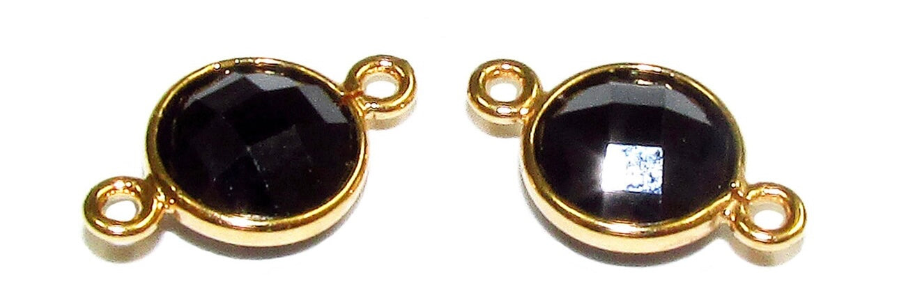 14K Gold Filled Checkerboard black onyx Round Link Connector size 12x7 mm