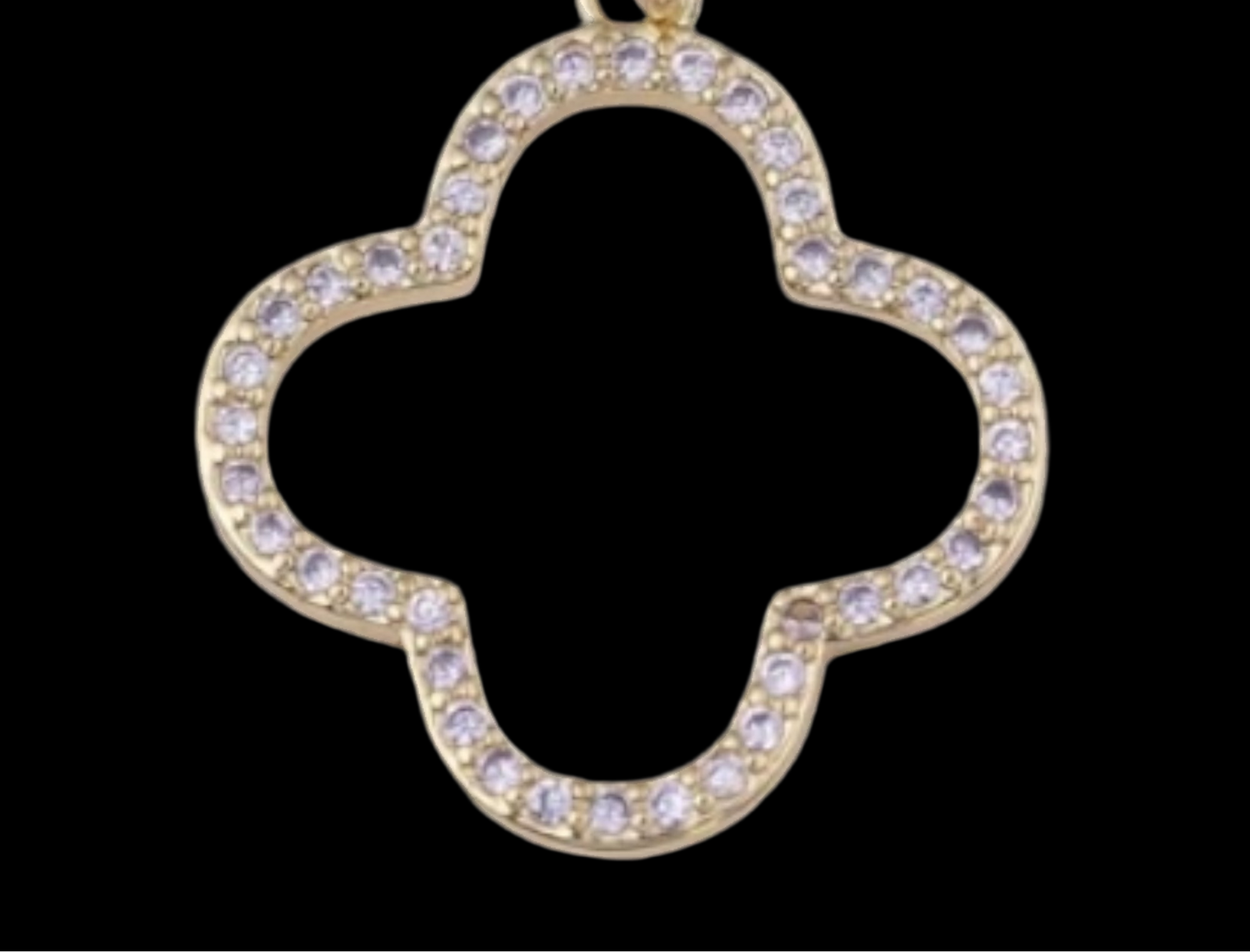 14k Gold Filled Clover Charm Charms Pendant with Pave CZs