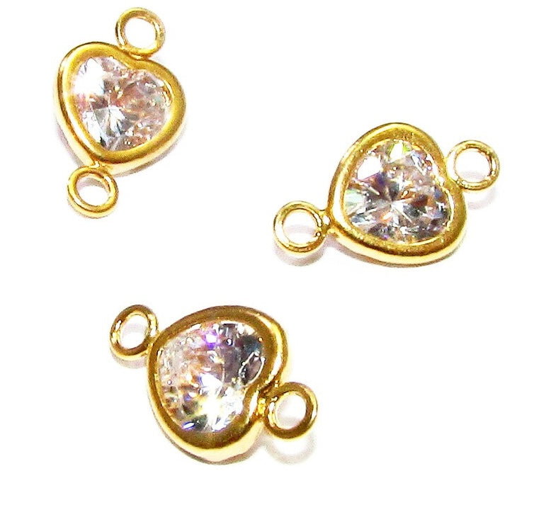 14K Gold Filled White topaz heart Link Connector size size 9.5x6.0mm