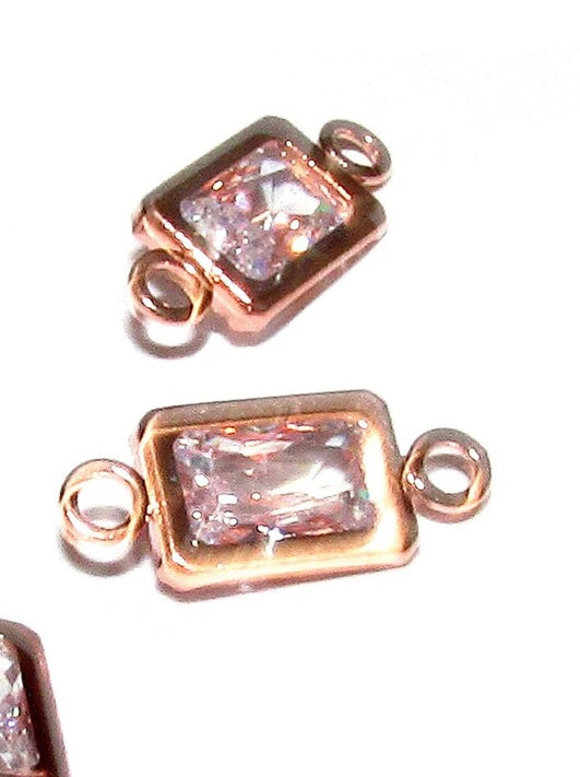 14K Rose Gold Filled White topaz rectangular Connector size 11.0x5.0 mm