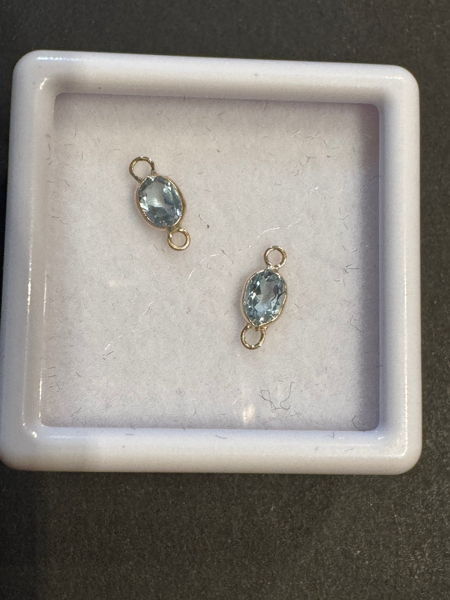 3x4mm Oval Blue Gemstone Connector - 14K Solid Gold (Yellow)