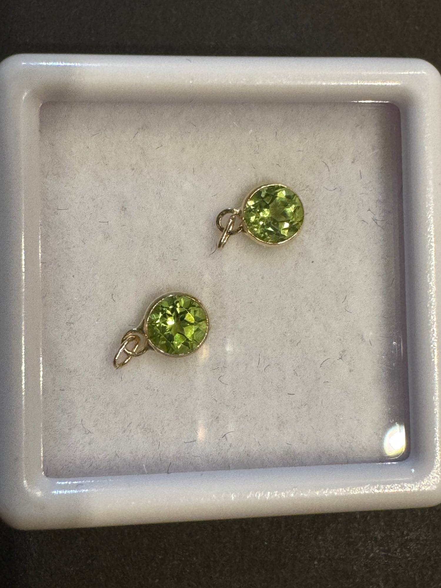 4mm Circle Peridot Gemstone Charm - 14K Solid Gold (Yellow)