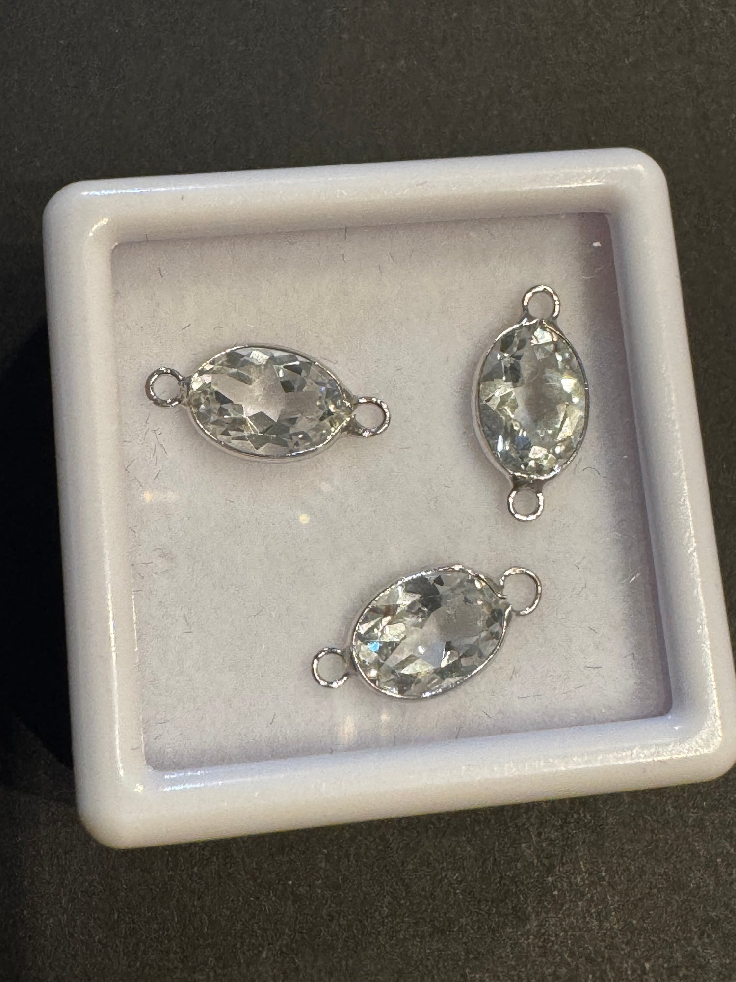5x7mm Oval White Gemstone Connector - 14K Solid Gold (White)