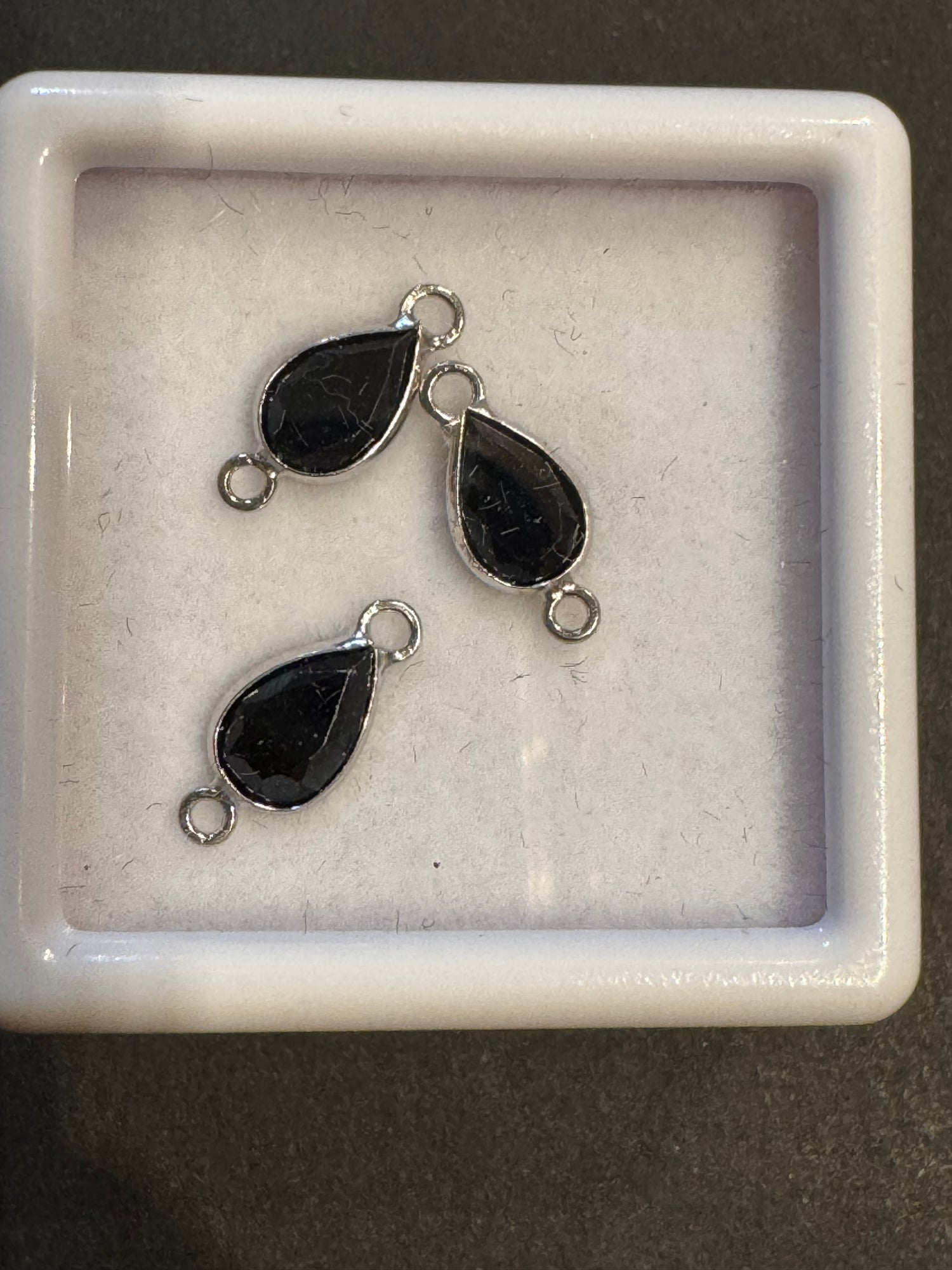 6x4mm Pear Black Spinel Connector - 14K Solid Gold (White)