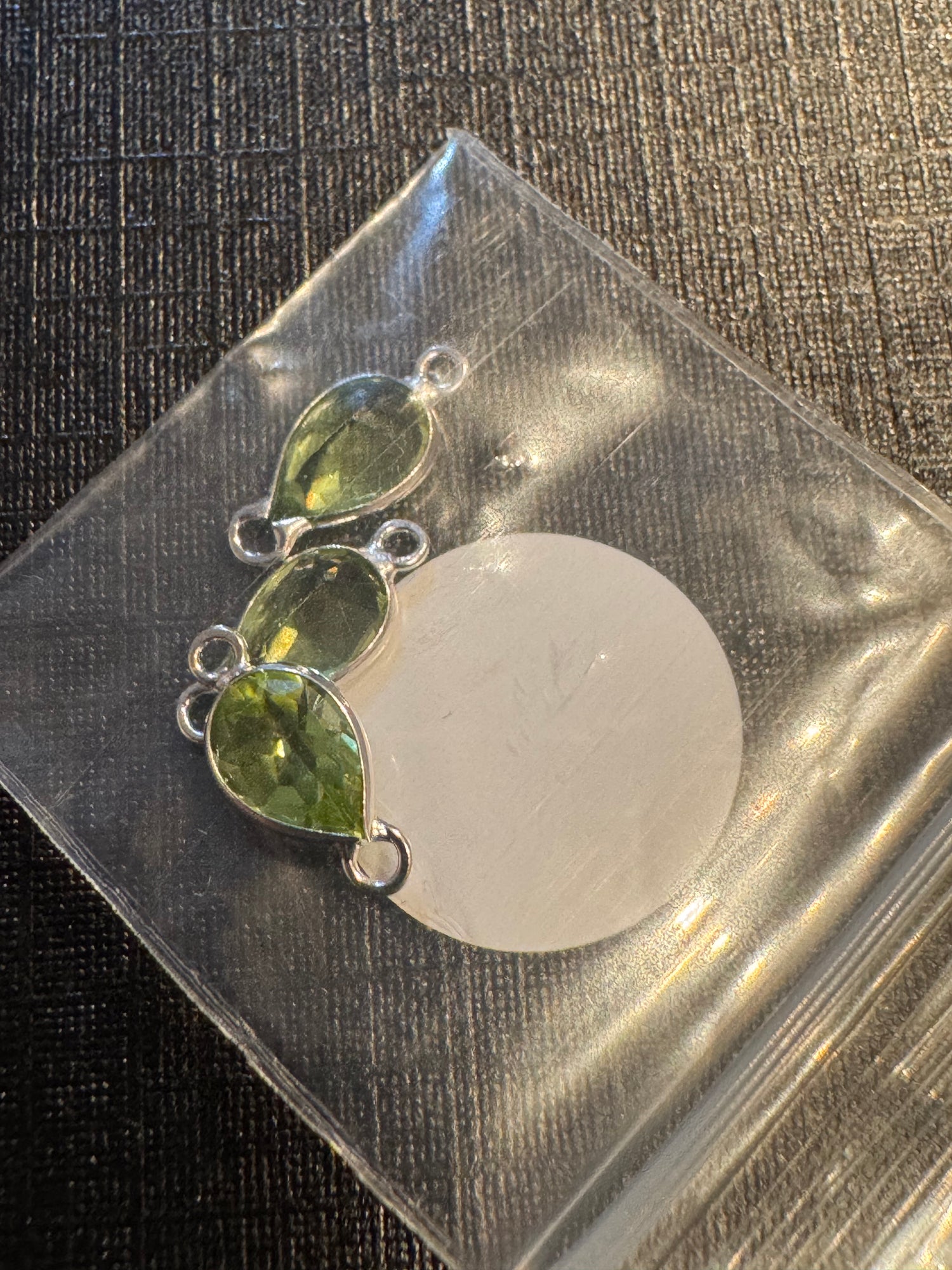 6x4mm Pear Peridot Connector - 14K Solid Gold (White)