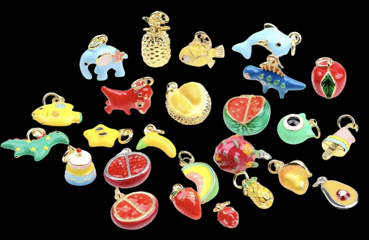 Animals Enamel Charms, Enamel Pendant, 18K Gold Filled Fruit