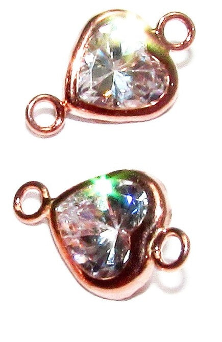 14K Rose Gold Filled White topaz heart Link Connector size 11.5x7.0 mm,