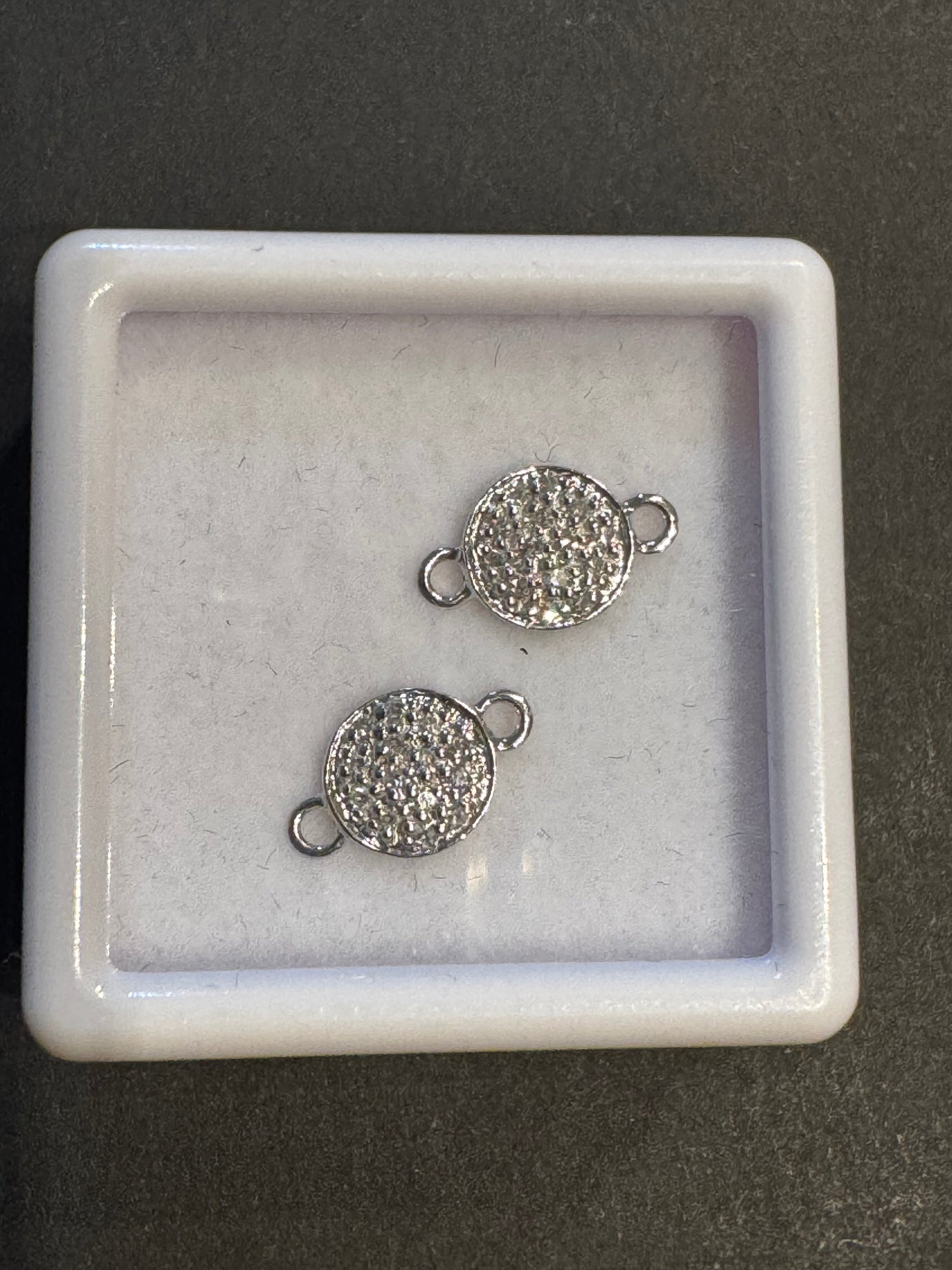 Diamond Circle Disc Connector - 14K Solid Gold (White)
