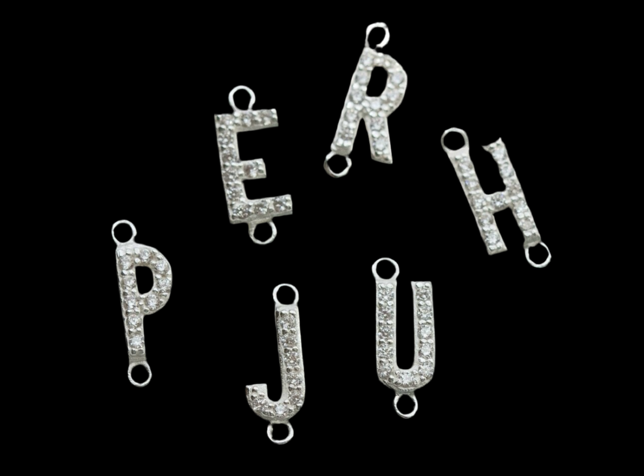 Sterling silver Initial letter connector charm, pave all white cubic zirconia