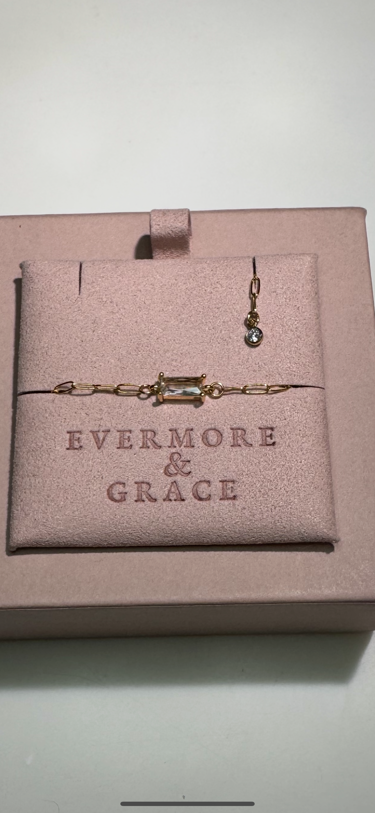 Premade Bracelet Baguette Birthstone Connector with gold filled Chloe chain, Gold CZ charm xtra small, clasp.