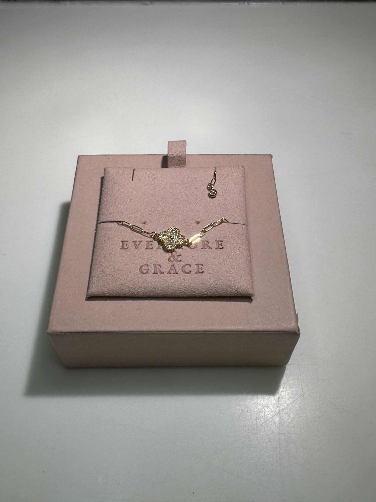 Premade CZ Clover and Chloe Chain, Gold CZ charm xtra small, clasp