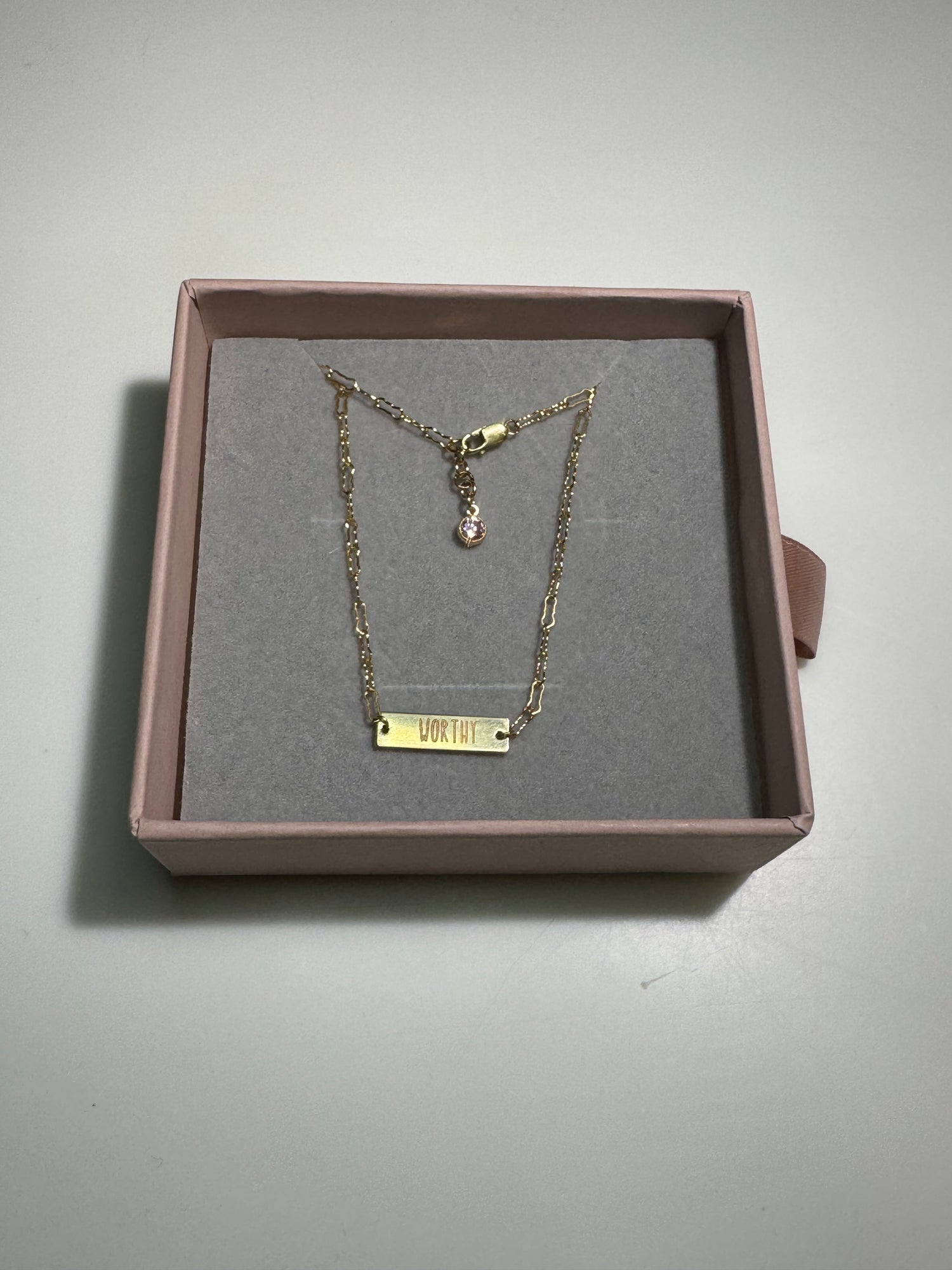 Premade necklace, custom worthy gold bar, birthstone charm Sabrina chain gold