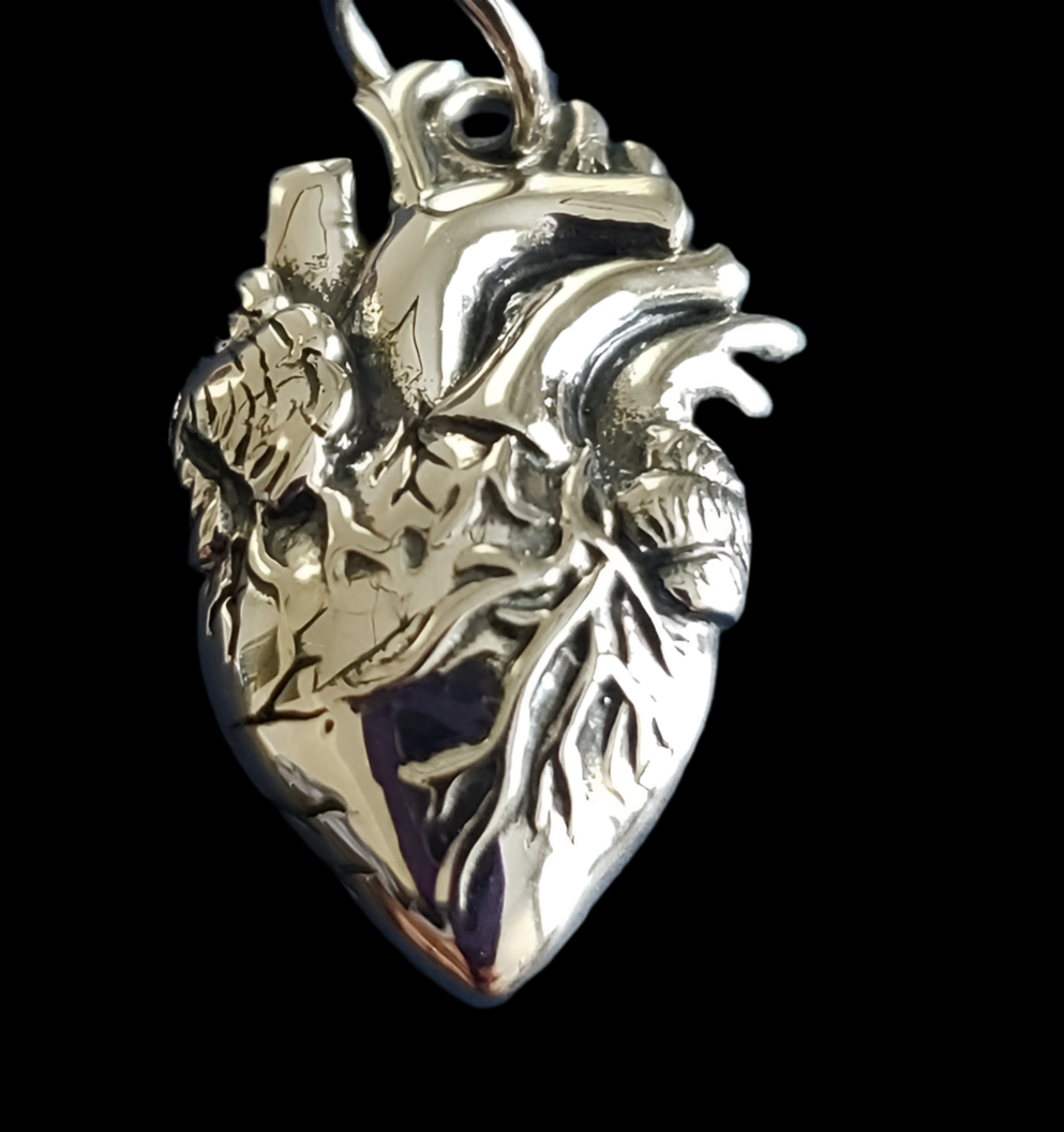 Sterling Silver Anatomical Heart Charm, vital organs, medical, heart surgery patient, doctor