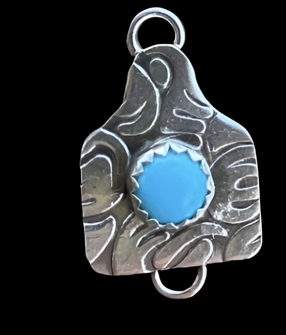 Sterling Silver Cattle Tag W/ Genuine Kingman Turquoise DD