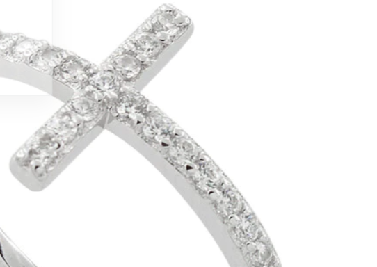 Sterling Silver Cross Clear CZ Ring -12
