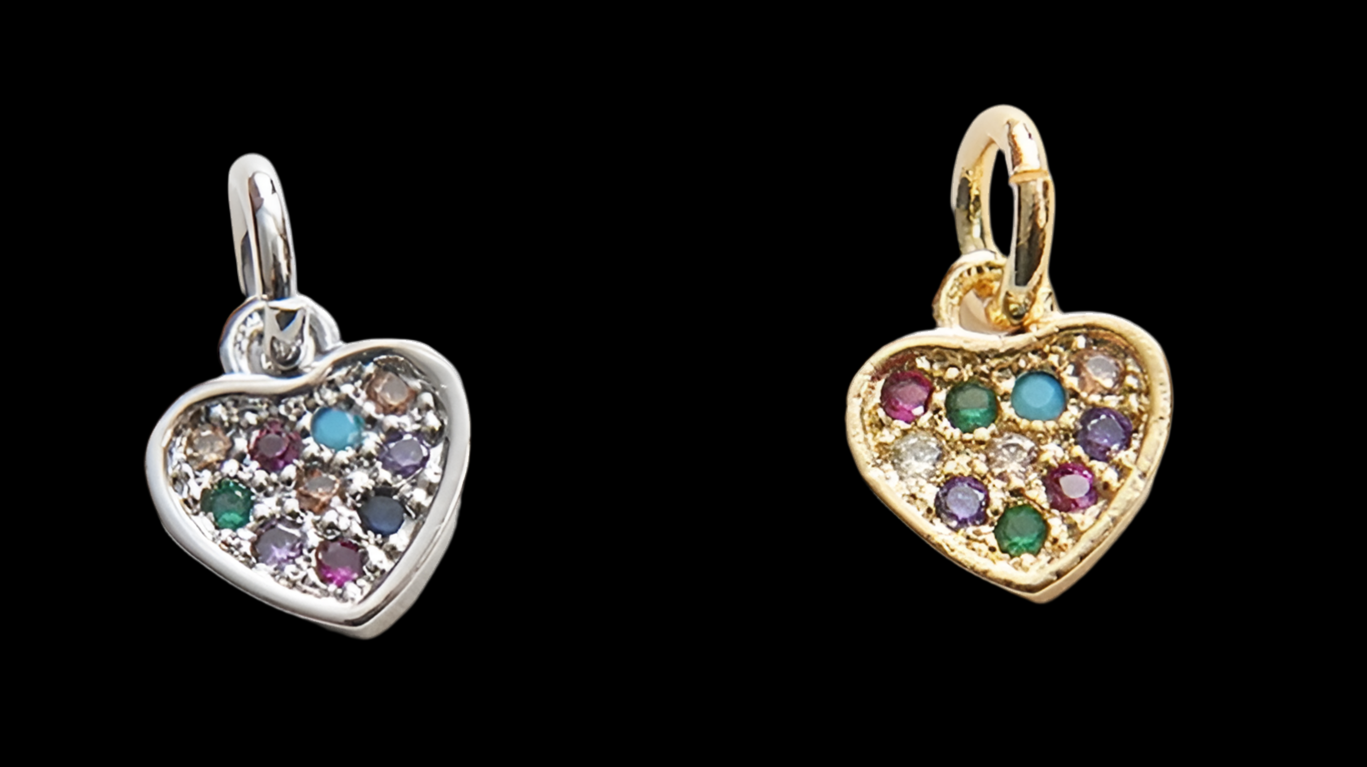 Tiny heart charm multi colored pave CZ